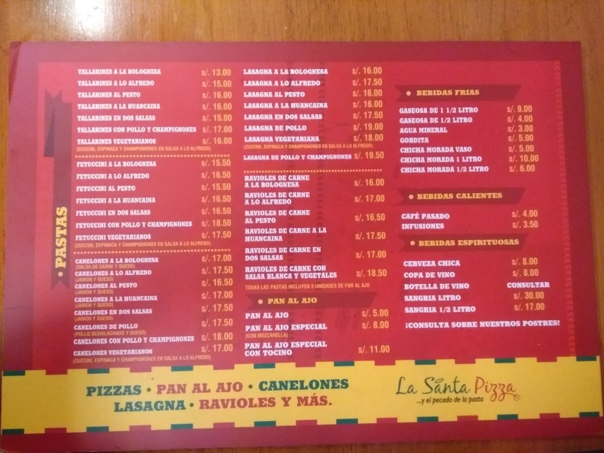 Introducing the menu at La Santa Pizza, located in the vibrant La Victoria district of Peru, promises a tantalizing experience for pizza and pasta lovers alike. This eatery shines with its artisanal pizzas, featuring a crispy dough paired with fresh ingredients. Customers rave about their customizable pizzas, packed with vibrant toppings like pineapple, olives, and chorizo, ensuring every bite bursts with flavor.